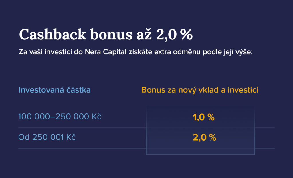 Cashback bonus až 2 % pro CZK investice
