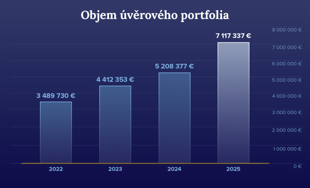 NordCard vykazuje dlouhodobě rostoucí výkonnost, což potvrzují i konkrétní finanční ukazatele. Objem úvěrového portfolia vzrostl z přibližně 3,5 milionu EUR v roce 2022 na více než 7,1 milionu EUR v roce 2025, což ukazuje na stabilní expanzi společnosti. Spolu s tím roste i čistý úrokový výnos, který za stejné období dosáhl více než 1,35 milionu EUR. Společnost je zároveň zisková – v roce 2025 dosáhla zisku před zdaněním (EBT) ve výši přes 600 tisíc EUR a výrazně zlepšila rentabilitu aktiv (ROA) na úroveň přes 8 %.